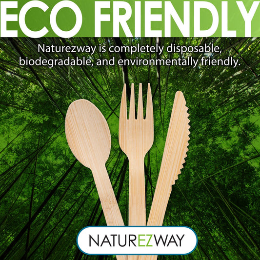Bamboo Cutlery Set – Compostable Spoons, Forks & Knives for Events