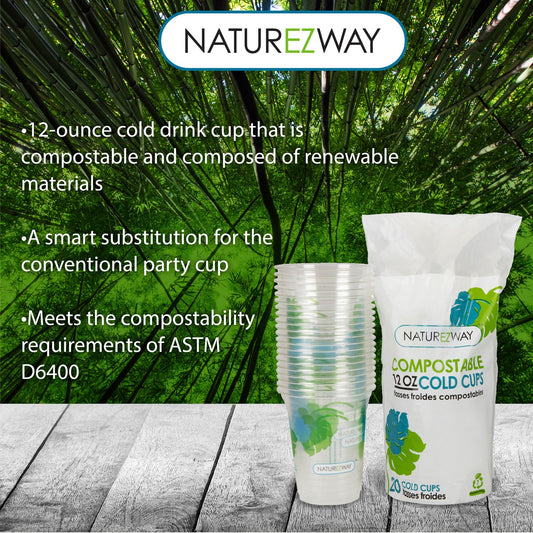 Eco-Friendly 20 PACK 12 oz. Compostable Disposable Cold Cups – Compostable & Sustainable