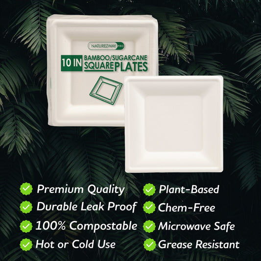 Eco-Friendly 20 PACK 10" Inch Bamboo Square Plates – Compostable & Sustainable