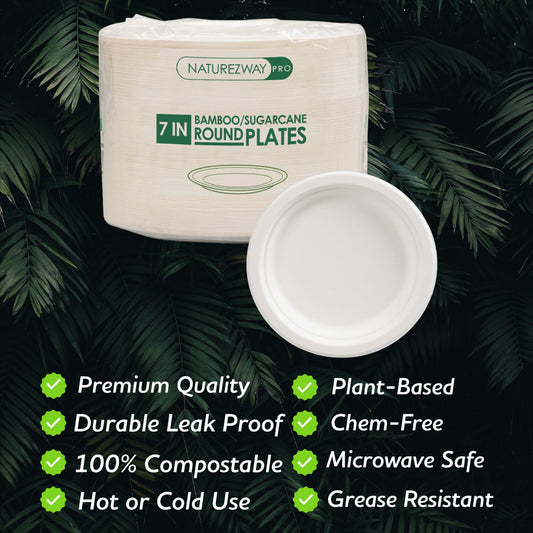 Eco-Friendly 125 Pack 7" Inch Bamboo Round Plates – Compostable & Sustainable