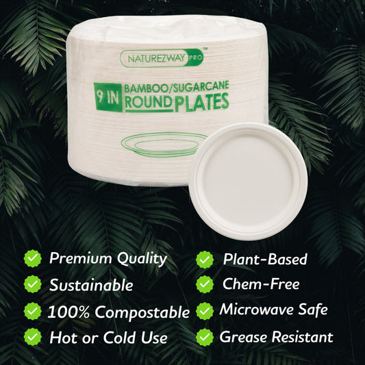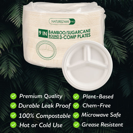 Eco-Friendly 125 PACK 9" Inch Bamboo Round Plates 3 Comp – Compostable & Sustainable