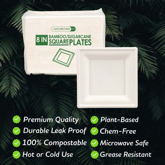 Eco-Friendly 125 PACK 8” Inch Square Bamboo Plates – Compostable & Sustainable