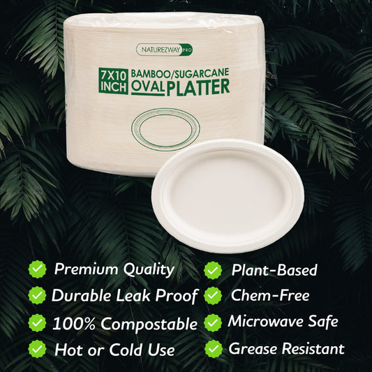 Eco-Friendly 125 PACK 7”x10" Inch Bamboo Round Platter – Compostable & Sustainable