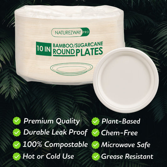 Eco-Friendly 125 PACK 10" Inch Bamboo Round Plates – Compostable & Sustainable