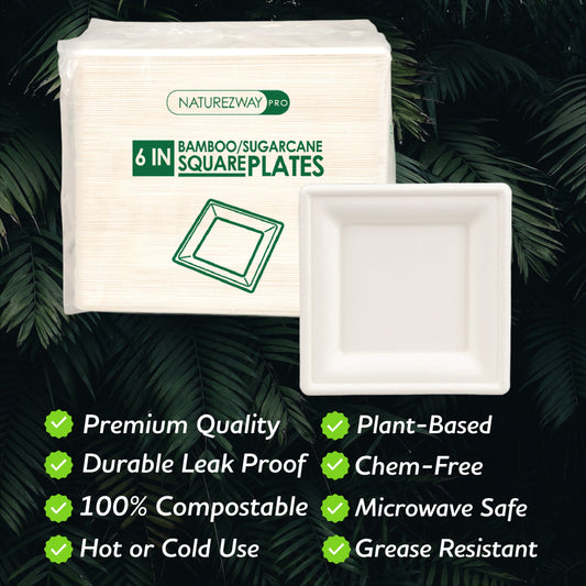 Eco-Friendly 125 PACK 6” Inch Square Bamboo Plates – Compostable & Sustainable