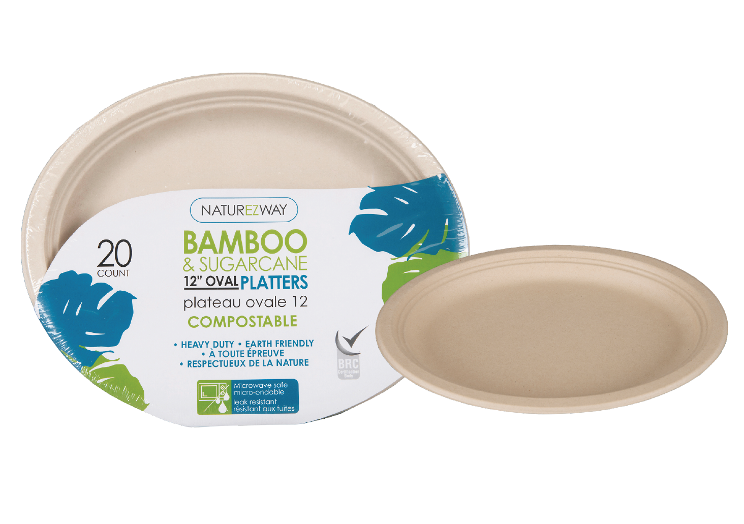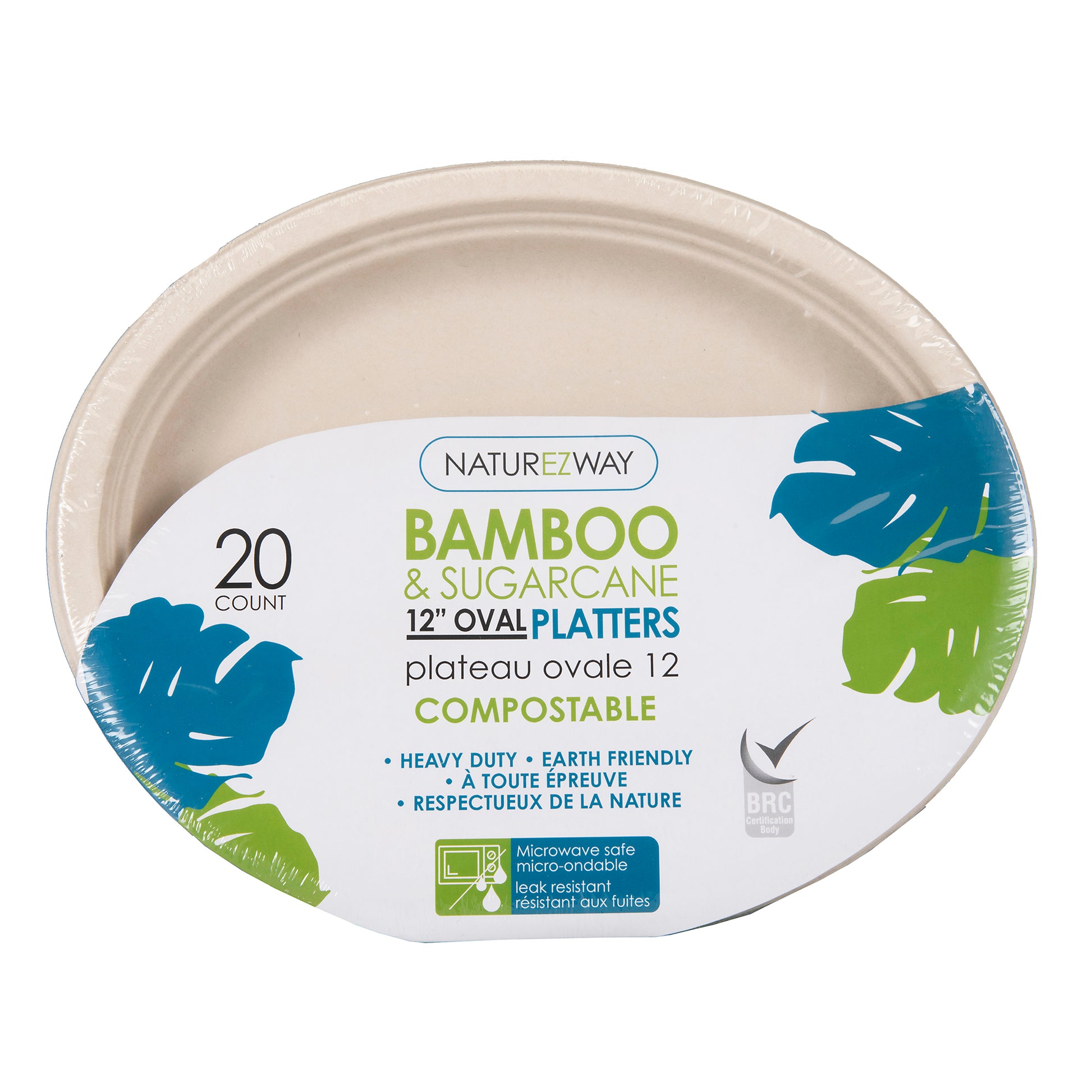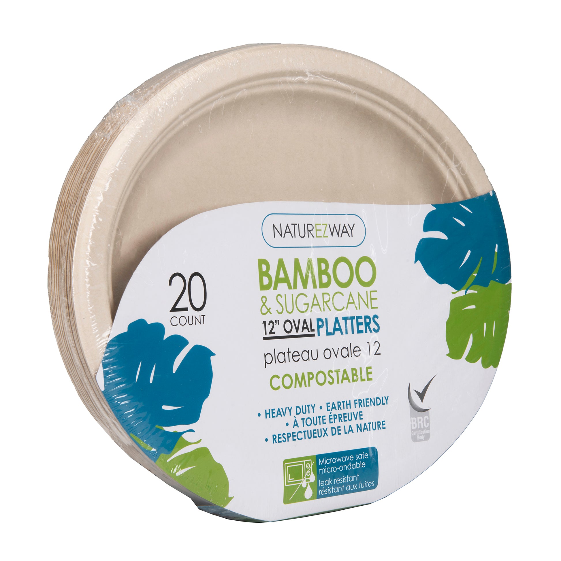 Disposable Compostable! Naturezway Bamboo & Sugarcane 12" Oval Platters are the perfect addition to any fast food shop, restaurant, or home gathering. These eco-friendly platters are made from sustainable bamboo and sugarcane fiber, making them a responsible choice for the environment.