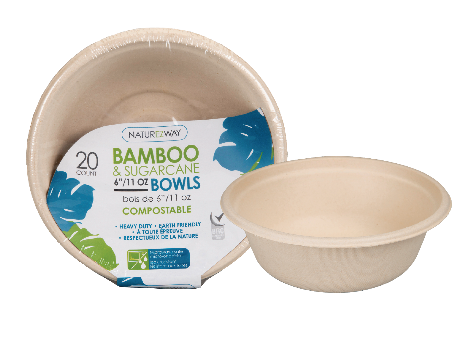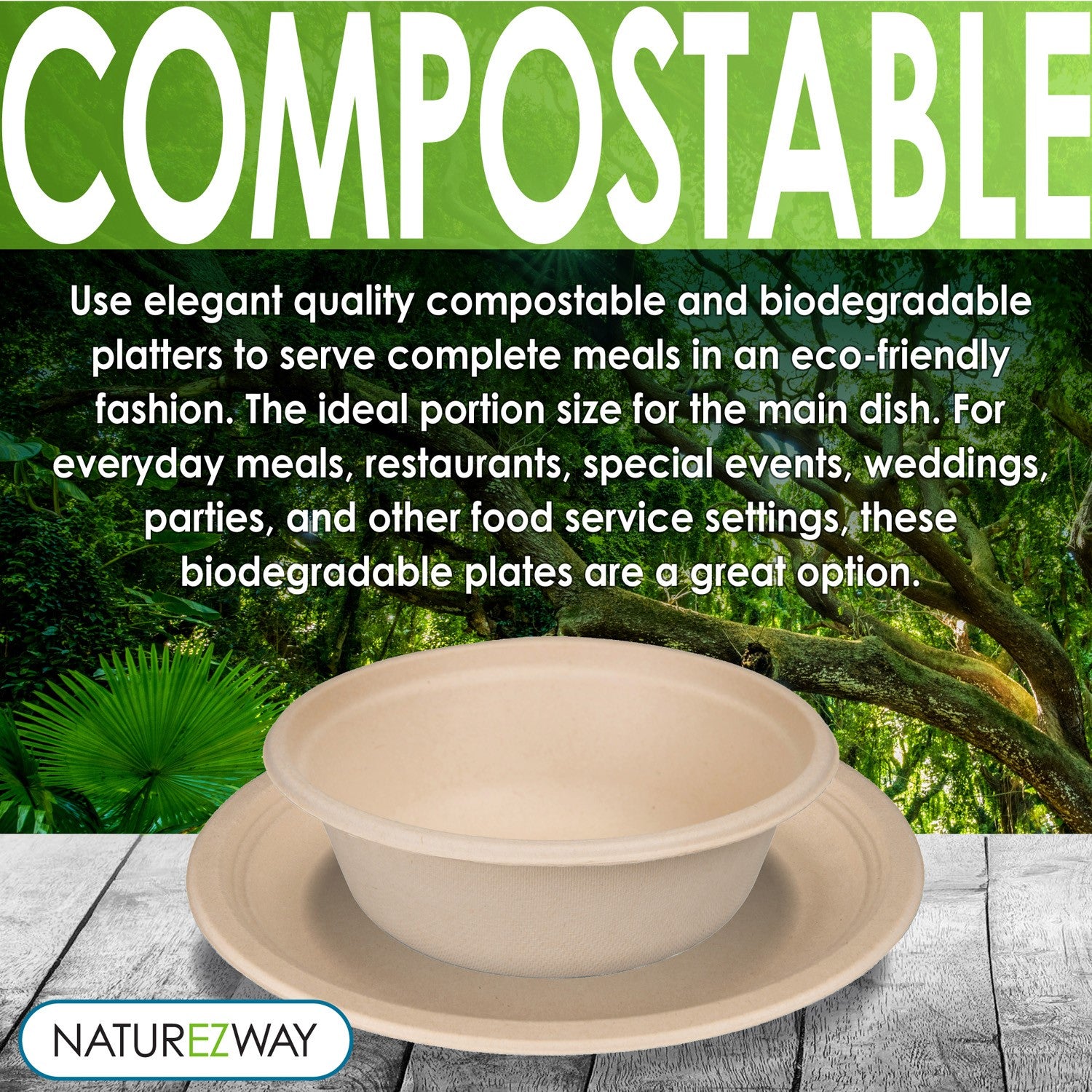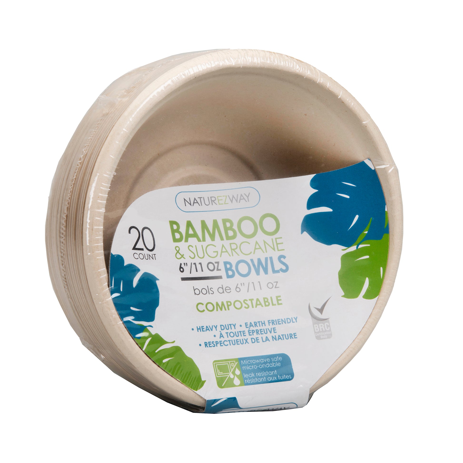 Disposable Compostable! Are you looking for a more sustainable and ecofriendly alternative to traditional plastic or paper bowls? Look no further than Naturezway Premium Quality 6" Bamboo & Sugarcane Round Bowls.