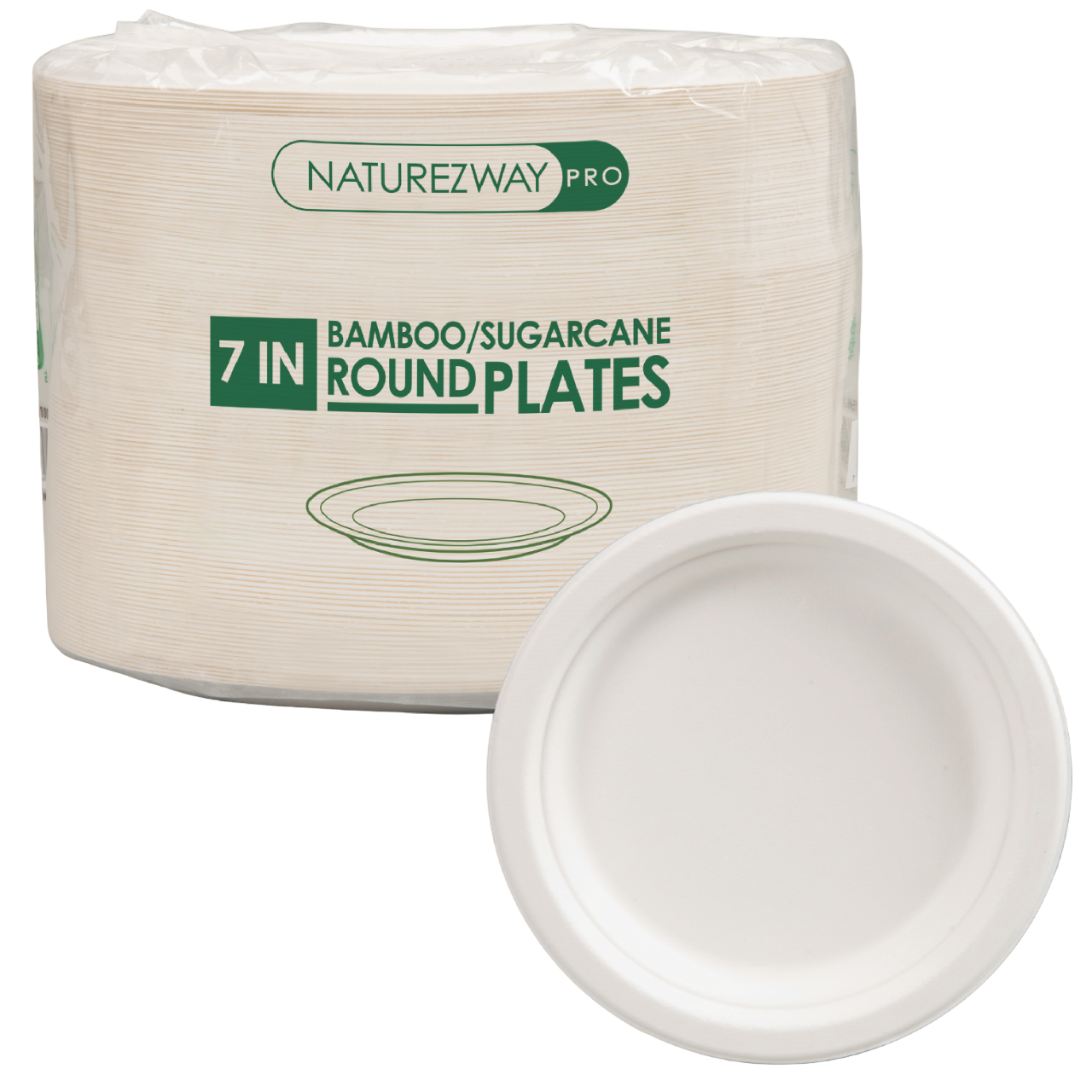 Eco-Friendly 125 Pack 7" Inch Bamboo Round Plates – Compostable & Sustainable