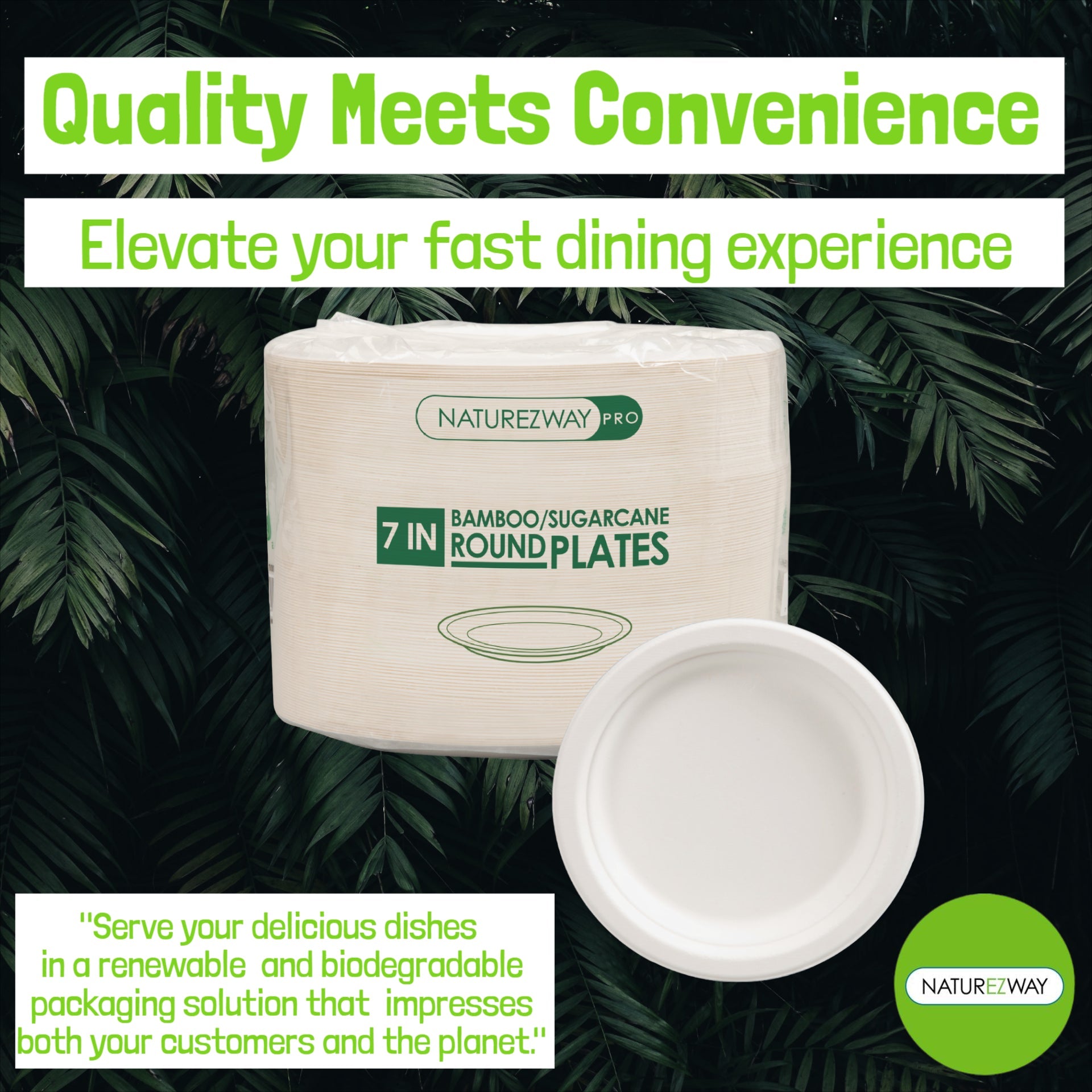 Superior Quality and Durability: Made from restaurant-grade bamboo, these plates are designed to withstand the rigors of commercial foodservice while offering a stylish and natural presentation. The durability of bamboo ensures that the plates hold up well under various food types and temperatures, providing an excellent dining experience for customers.